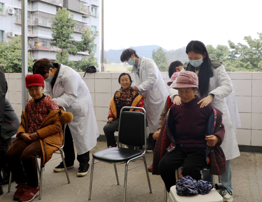 据了解,当日9点,达州职业技术学院临床医学院师生以及附属医院的医务人员,就在为居民免费测量血压、血糖,并针对老年人常见病进行个性化健康指导。在现场,由学院中医协会带来的艾灸、推拿等服务备受居民追捧,志愿者手持艾条,在居民的身体穴位上进行熏烤,配合肩颈按摩,精准有力地按压穴位。“这些娃娃的手法还可以,她给我把肩膀揉得很舒服。”社区居民戴长宣说。